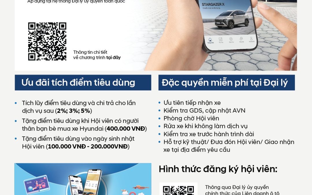 Hội viên Hyundai là Chương trình khách hàng thân thiết được phối hợp thực hiện bởi Công ty Cổ phần liên doanh ô tô Hyundai Thành Công Việt Nam và hệ thống Đại lý ủy quyền nhằm mang đến những trải nghiệm và ưu đãi miễn phí đặc quyền cho khách hàng sở hữu xe Hyundai, tại đại lý và các đối tác liên kết thuộc nhiều lĩnh vực khác nhau.